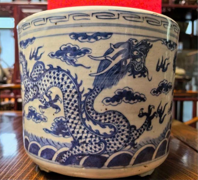 收藏人只要說到龍,就容易起爭執,來一個宮與民之爭,五爪與四爪之別。龍是瑞獸,是尊貴和祥瑞的象征。我也喜歡收藏龍元素的藏品,恐龍蛋是其中之一,這枚恐龍蛋是多年前一友人所贈。另外,我還收藏了一枚滄龍牙。當然收藏數量最多的當屬龍洋老銀元。除此之外,還收藏了不少老龍缸、老龍盤等等。