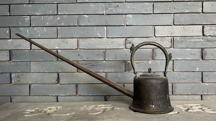 壺之材質繁多,金、銀、錫、銅、玉、紫砂、瓷各具風韻。市井坊間,尤以老錫壺、銅壺、紫砂壺與瓷壺最為常見。我收藏了一把老銅長嘴壺,此乃舊時茶攤叫賣所用,壺嘴修長,銅色溫潤,依稀可見當年市井煙火氣。